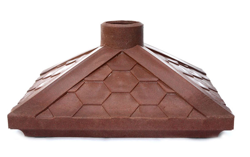 Колпаки полимерно-песчаные на заборный столб (38,5х38,5 см, в сечении полтора кирпича) - это уникальный конструктивный элемент, который защищает столб от разрушения и придаёт законченный и прекрасный эстетический вид всему ограждению. Продукция изготавливается методом горячего прессования, имеет точные геометрические формы и богатый внешний вид, с годами не меняет окраску благодаря полному равномерному окрашиванию и стойким пигментам.