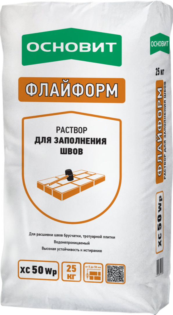 Раствор для заполения швов водонепроницаемый ОСНОВИТ ФЛАЙФОРМ XC50 Wp предназначен для расшивки швов штучных материалов, таких как клинкерная брусчатка, натуральный камень с целью защиты основания от доступа влаги и придания поверхности декоративных свойств.