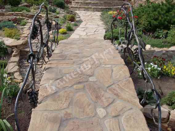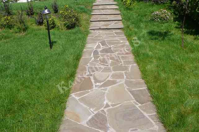 Природный камень – это осколки горных пород, формировавшиеся многими тысячелетиями. Их различные фактуры рисунков и цвета никого не смогут оставить равнодушным. Для мощения дорожек чаще всего применяется плитняк. Его форма идеально подходит для укладки на горизонтальную поверхность, износостойкость способствует сохранению эстетичности внешнего вида, несмотря на испытываемое давление при эксплуатации.