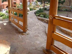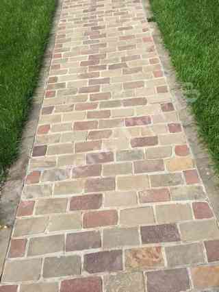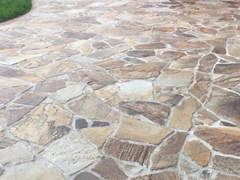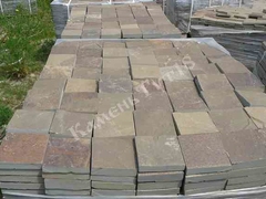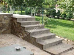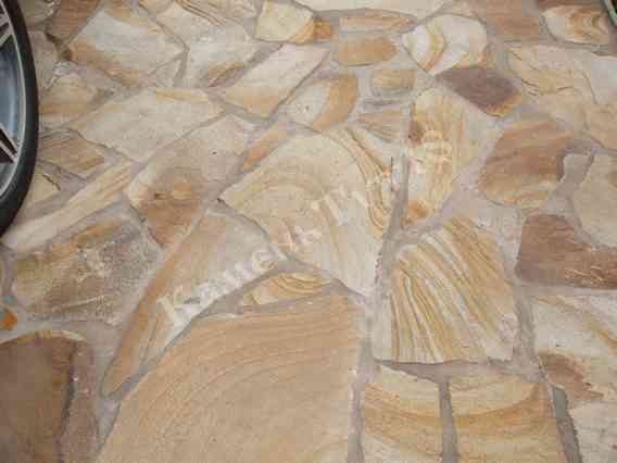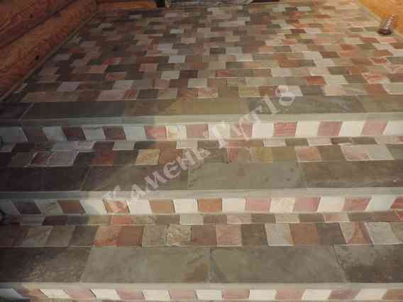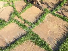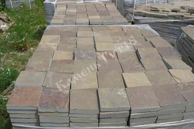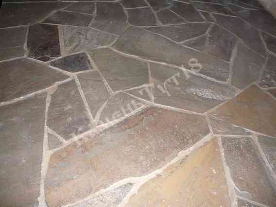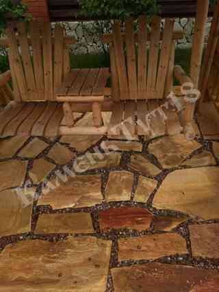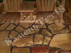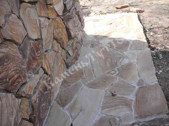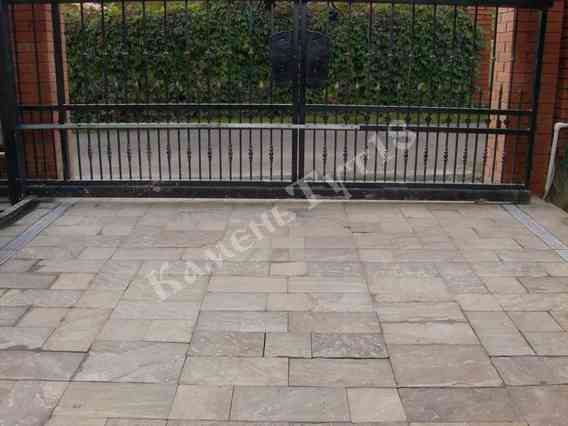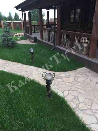 - Песок. Для этого сначала выкапывается грунт немного глубже, чем высота каменных плиток, затем выравнивается и утрамбовывается по специальной технологии. Укладывается плитняк, и в завершении швы плотно засыпаются песком.