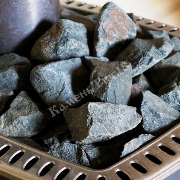 Свойства габбро-диабаза идеально подходят для бани и сауны. Он не имеет вредных примесей, экологически чистый, отличается высокой химической стойкостью, равномерно разогревается по всей массе, аккумулируя тепло, а далее постепенно отдает ее помещению. Коэффициент линейного расширения камня при нагревании одинаковый во всех направлениях. Порода без проблем выдерживает высокие температуры. Благодаря этому, габбро-диабаз долго сохраняет тепло и не раскалывается.
