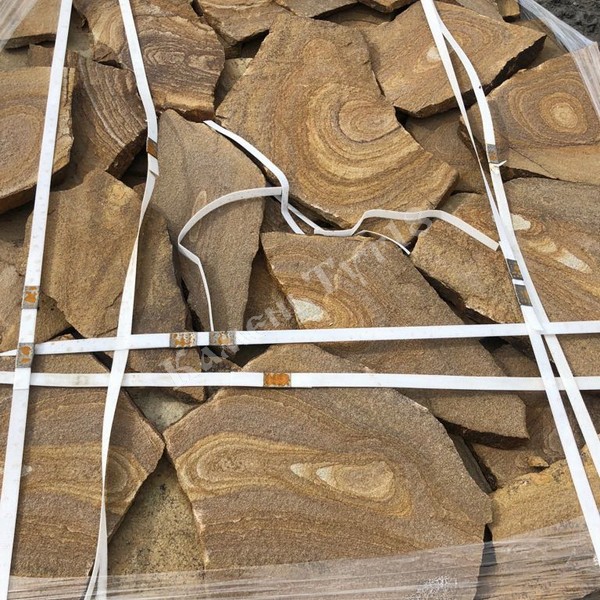 Внешний вид позволяет облицовывать им фасады зданий, цоколя. Песчаник отлично подходит для укладки в дорожки из природного камня. Такой камень используют для декорирования бассейнов, прудов, фонтанов и других мини водоемов.