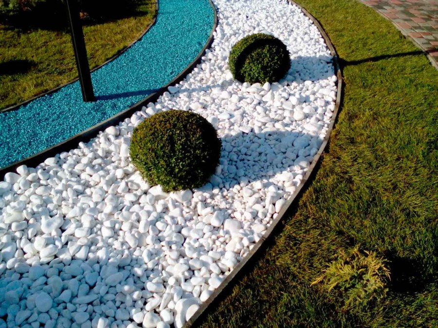 Мировые дизайнеры всегда используют комбинацию разных камней и отсыпки для сотворения привлекательной композиции на участке. Чаще всего используется именно галька, так как она имеет уникальный внешний вид, высокую прочность и гладкую отшлифованную естественным путем поверхность.