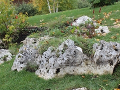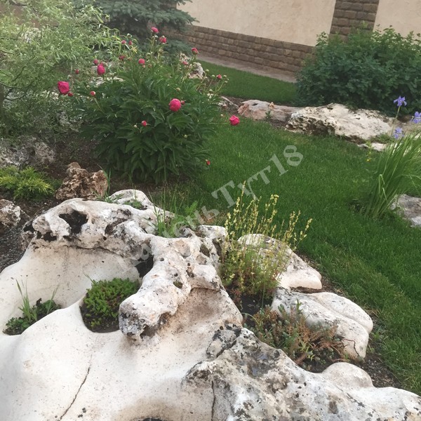Глыбы и валуны широко применяют в ландшафтном строительстве. Помимо эстетической привлекательности туф дает возможность выращивания всевозможных растений на своей поверхности.