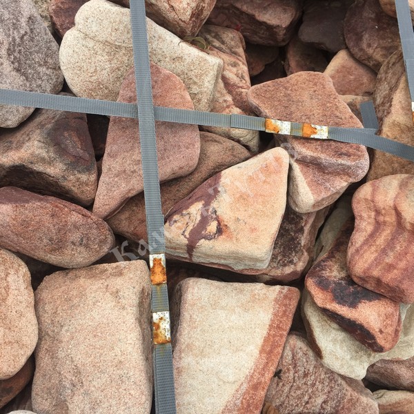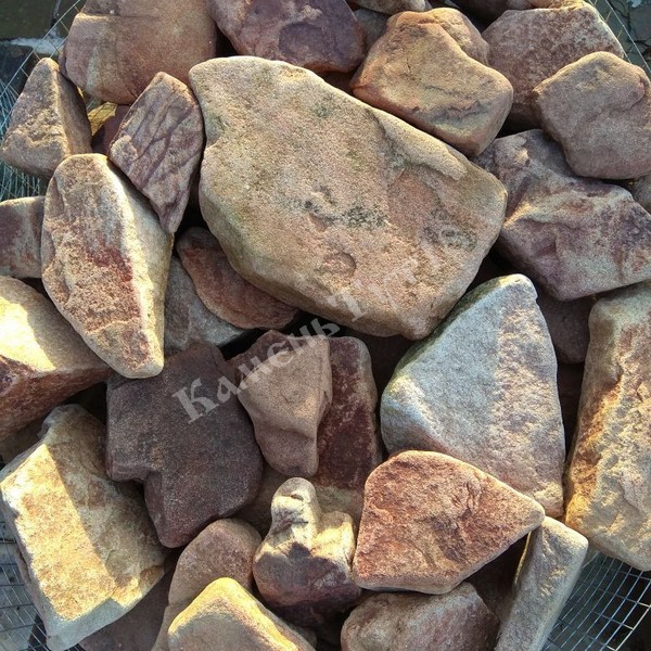 Валун Тигровый – это природный камень песчаник в виде глыбы неправильной формы бежево-желтого или коричневого цвета с активным рисунком, напоминающим шкуру тигра.