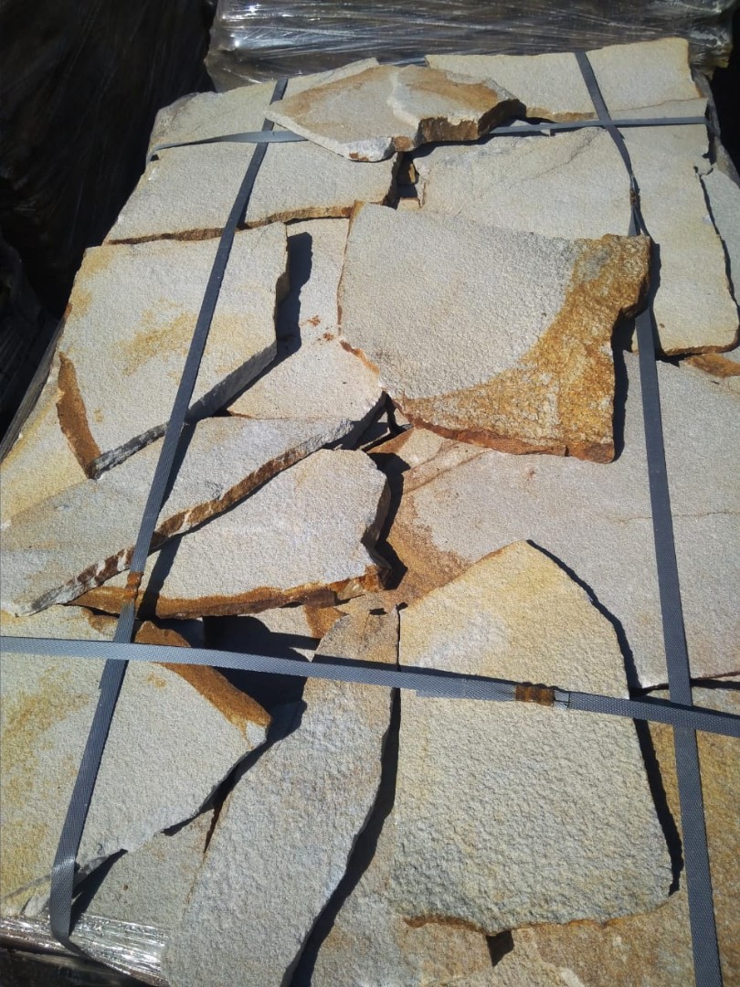 Песчаник желто-рыжий с разводом является одним из самых красивых песчаников. Широко применяется в современном строительстве. Ее используют в основном как облицовочный материала для стен, цоколя, заборов. Она подходит для строительства оригинальных колонн и для оформления ландшафтного дизайна дачных участков. Натуральный камень очень долговечный, он выдерживает любые атмосферные воздействия без ущерба для внешнего вида и прочности.