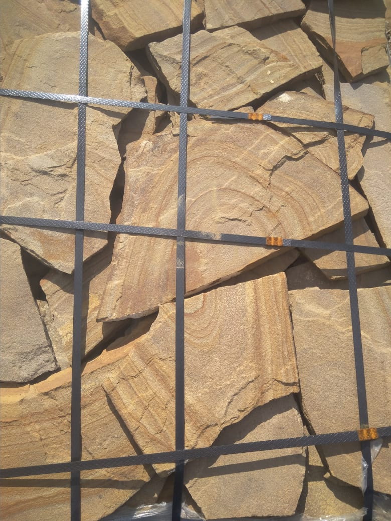 Песчаник желто-рыжий с разводом является одним из самых красивых песчаников. Широко применяется в современном строительстве. Ее используют в основном как облицовочный материала для стен, цоколя, заборов. Она подходит для строительства оригинальных колонн и для оформления ландшафтного дизайна дачных участков. Натуральный камень очень долговечный, он выдерживает любые атмосферные воздействия без ущерба для внешнего вида и прочности.