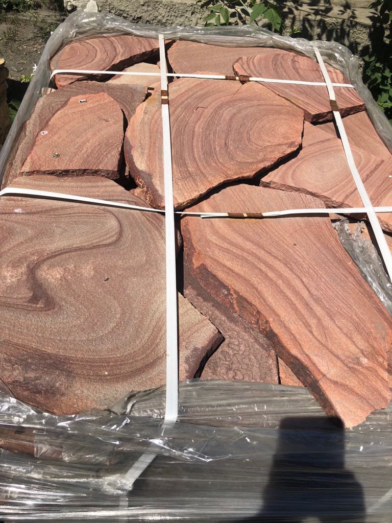 Внешний вид позволяет облицовывать им фасады зданий, цоколя. Песчаник отлично подходит для укладки в дорожки из природного камня. Такой камень используют для декорирования бассейнов, прудов, фонтанов и других мини водоемов.