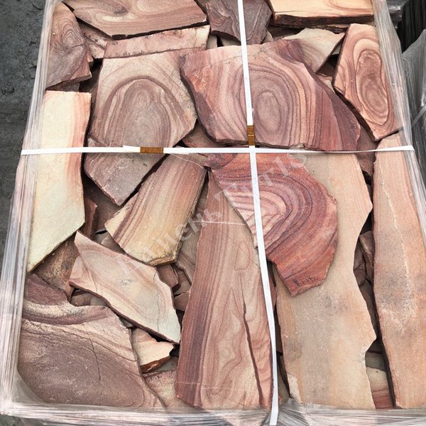 Внешний вид позволяет облицовывать им фасады зданий, цоколя. Песчаник отлично подходит для укладки в дорожки из природного камня. Такой камень используют для декорирования бассейнов, прудов, фонтанов и других мини водоемов.